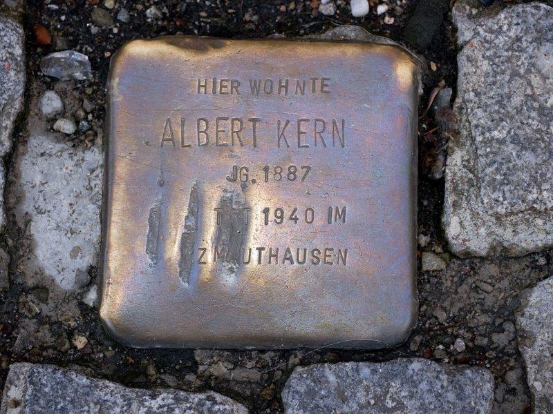 Albert Kern wurde aus Glaubensgründen von den Nationalsozialisten verfolgt. Er gehörte den Zeugen Jehovas an, die sich als einzige Religionsgemeinschaft völlig den Ansprüchen des Hitlerregimes verweigerten. Zeugen Jehovas hoben die Hand nicht zum Hitlergruß, sie verweigerten den Eid auf „Führer und Staat“ und auch den Wehr- und Arbeitsdienst. Ihre Kinder traten nicht in die Hitlerjugend ein. Wegen seiner religiösen Überzeugung wurde Albert Kern ins Konzentrationslager Mauthausen deportiert und starb dort 1940.